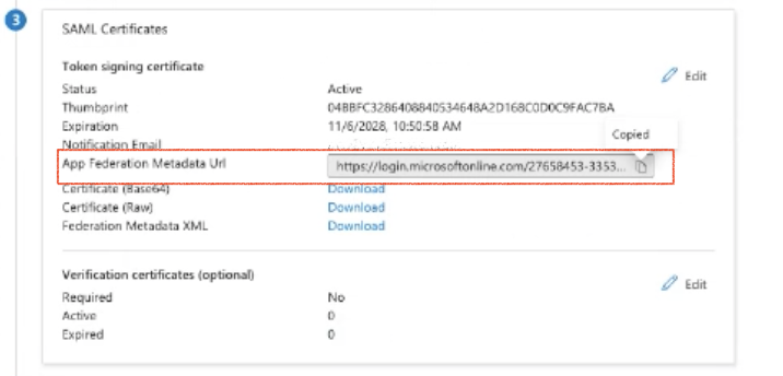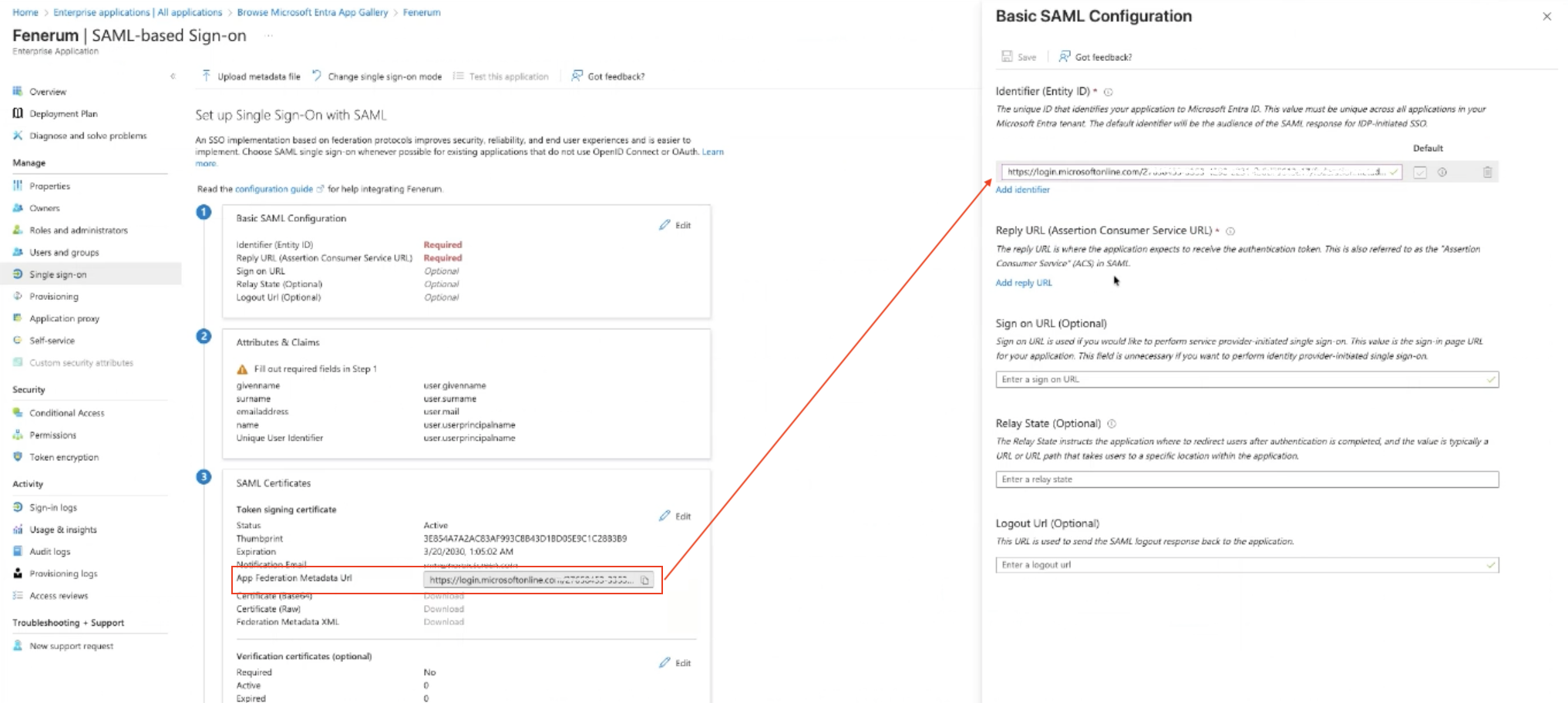Step 10: Copy the App Federation Metadata URL and Send It to Fenerum