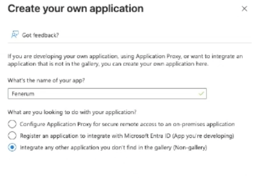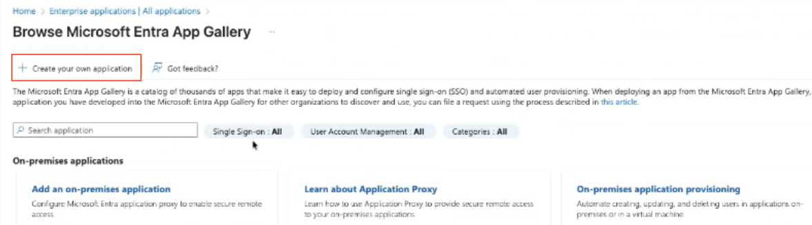 1. On the Browse Microsoft Entra App Gallery page, click + Create your own application.