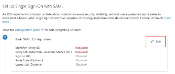 1. Under Basic SAML Configuration, click Edit.